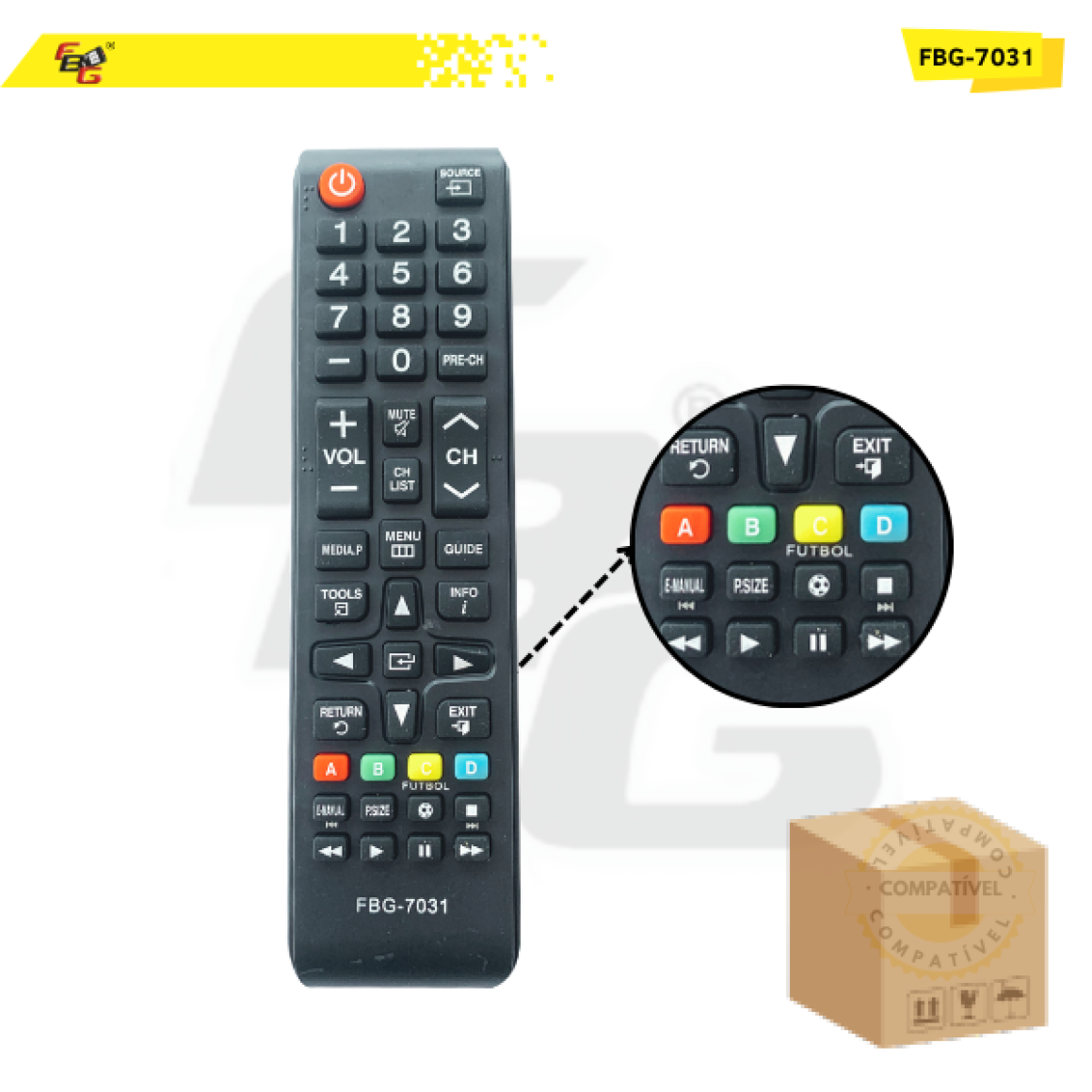 Controle Remoto compatível com TV Samsung LCD/LED - Modelo FBG-7031