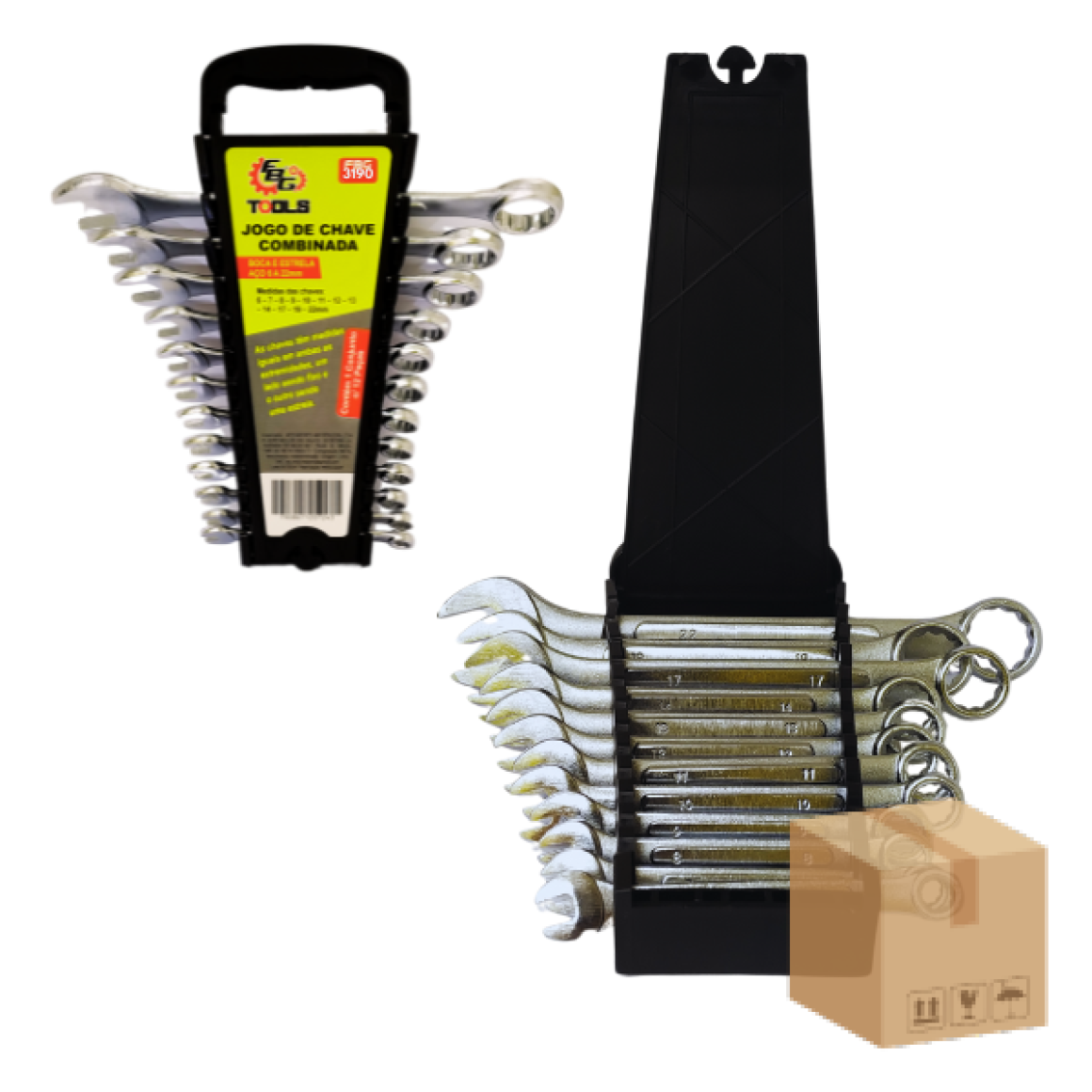 Descrição: Conjunto de 12 peças. Chave de boca e estrela aço 6 a 22MM.